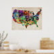 A map of the United States of America, created from watercolor painting and digital manipulation