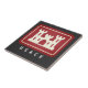 Darkened version of the U.S. Army Corp of Engineers scarlet and white castle logo on black background with white text