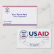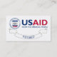 This business card is decorated with the United States Agency for International Development Logo with red, white, and blue trim and the word "Retired."