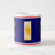 This big mug is decorated with the International Maritime Signal Flags bravo and zulu bracketing a U.S. Coast Guard Ensign collar device. Bravo-Zulu means "Well Done."