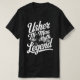 "Usher. The Man. The Legend. The Legend" T-shirt. Arrange the text in a hierarchy with "Usher" at the top, followed by "The Man," then "The Legend," and finally "The Legend" at the bottom.