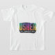 The t-shirt features the text "Usher the Unrivaled" in a bold, multicolored gradient. Each word smoothly transitions into the next, creating a vibrant and eye-catching design.