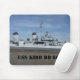 A mousepad featuring a photo of the USS KIDD DD 661 docked on the Mississippi River in Baton Rouge, La.