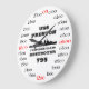 Purchased this online and it got delivered quickly. It was a present for my Dads 70th birthday. He loves clocks so decided to get him one with something written on it. Battery went in and it started working straight away. Dads had no issues with it. Printing was just how it came up online.