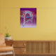 Beautify your yoga studio or meditation room with this visualisation showing the chakras and the sushumna [ida and pingala] overlaid on the silhouette of a person in "camel pose," or "ustrasana," floating in a radiance of purple, blue and white aura pulses showing the conceptual lines of the pose, and the mind's attention directed to the vanishing point of the posture. High resolution, extreme detail, works on all sizes.