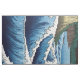 Sea off Satta in Suruga Province - From the series Thirty-six Views of Mount Fuji - Utagawa Hiroshige, Woodblock colour print, 1858. Ukiyo-e print shows waves crashing on rocks along the coast at Satta in the Suruga Province, with view of Mount Fuji in the background.