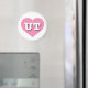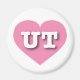 This magnet features a calm, cool pink heart containing the bold, white, upper case letters UT, the official abbreviation for Utah, the beehive state.