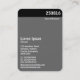 A vertical business card template with a black header with an image on the front. Company name in the header on the front and back with All other contact details on the back. The photo or image on the front can also be changed. The design also allows plenty of scope for additional customisation.