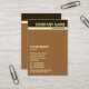 A vertical business card template with a brown header edged with a cream band. All details on the front with the back left blank, which can be left as is or further customised. The design also allows plenty of space for the addition of other elements e.g. a logo.