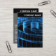 A vertical business card template with a black header with an image on the front. Company name in the header on the front and back with All other contact details on the back. The photo or image on the front can also be changed. The design also allows plenty of scope for additional customisation.