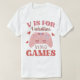 This fun and flirty graphic design features a pink video game controller with hearts on the buttons and the phrase "V is for video games" written in a playful and romantic font. It's the perfect way to express your love of video games or to find the perfect gift for a gamer in your life.