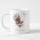 V Letter Gold Monogram Marsala White Florals Large Coffee Mug