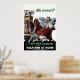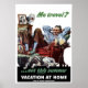 This vintage World War II poster features a father relaxing in his chair, with his dog, in front of a fan. It declares, "Me Travel? Not This Summer. Vacation At Home. Office Of Defence Transportation". Celebrate American and WW2 History with this digitally restored vintage war poster product from The War Is Hell Store.