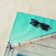 Cabana vacation beach house. Features a wooden cabana in colours of turquoise/ teal and cream white. Personalisation on front is optional.