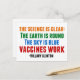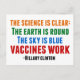 Hillary Clinton quote on vaccination:  the science is clear: the earth is round, the sky is blue, vaccines work. Timely in light of the measles outbreaks and the Covid pandemic. Please vaccinate your children.