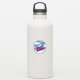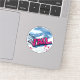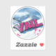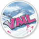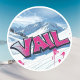 Sticker from the snowy mountains of Vail Ski Resort, Colorado, USA, featuring a gorgeous blue white mountain landscape with a big graffiti style script Vail in pink.