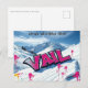 Hello from the snowy mountains of Vail Ski Resort, Colorado, USA! We hope you're having a wonderful ski vacation. This postcard features a gorgeous blue white mountain landscape with a big graffiti style script Vail in pink.