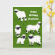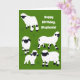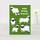 Create a personalised card for birthdays or any occasion. The message on the front and the inside of this card is ready for your customisation. This card features illustration of Valais Blacknose Sheep in white and black against a green background.