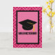 Cute pink patterned Valedictorian Graduation Card has black grad hat logo. Give that head of the class smart graduate a great send off with this greeting card.