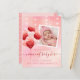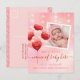 Share with family and friends the happy news of the birth of your Valentine baby with this announcement card adorned with your favourite Instagram photo. Beautiful hearts and twinkling fairy lights bead curtain background in light peach and blush pink, decorated with a bunch of heart-shaped balloons in red and various shades of vintage pink. Replace the sample photo and text with your own for a personalised gift. Simple, modern, versatile design with coordinating polka dot background at the back.
