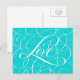 Valentine Calligraphy Love Heart Teal Aqua Blue Postcard