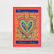 A 'Missing You' Valentine Card with a decorative heart design in red, blue, green and gold from a watercolour painting by Judy Adamson. The inside is left blank for your own message.