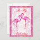 Pretty white and pink fleur Valentine postcard, with two whimsical pink flamingos. Fun way to send your Valentine love.