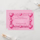 A hot pink Valentine's Day invitation of hearts and curling ribbon in a frame.