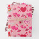 A Wrapping Paper Sheet Set For Valentines Day In White, Pink, Red Designs Of Balloons, Gnomes, Cupcakes