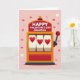 This greeting card shows a stylized slot machine centered on a soft blush pink background, with small hearts scattered around in rose, red, and ivory. The machine is warm orange with deep red accents, giving it a cozy, retro look. Across the top marquee, the text reads “HAPPY VALENTINE’S DAY GRANDMA” in white, all-capital letters, placed neatly in the header area. In the middle, the reels line up three red hearts, like a lucky match that says love really hit the jackpot. A deep teal lever on the side stands out against the warmer colors and makes the machine feel more real. The hearts and the “jackpot” idea make it a sweet way to show affection and appreciation for Grandma 🥰. It feels meaningful because it turns a simple message into a fun picture of love and good fortune ❤️.