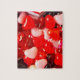 Sweet and colourful heart candies in red, pink and maroon with sprinkles