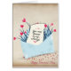 red heart flowers on love note in blue envelope illustration with romantic verse