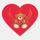 Sticker shown in a heart shape with a cute teddy bear Valentine heart print.