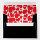 Card envelope shown in black with a romantic love valentine hearts print inside.