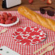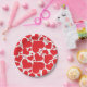 Party paper plate shown with a festive valentine hearts print. Customise this item or buy as is.