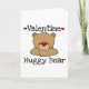 Valentine's Day greeting card featuring an adorable brown teddy bear with red hearts and text that reads "Valentine Huggy Bear"!