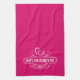 This kitchen towel is shown in a Happy Valentine's Day print.