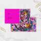 Whimsical vibrant and artistic painting with colourful confetti..Mythical love between Harlequin and Columbine,Acrylic painting inspired from Venetian feather masks and Commedia dell'arte - Venice. Bright purple pink yellow green colours.