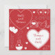 A flat greeting card designed with a two names valentine pattern, white on red. Customise the greeting card with your heart names, background colour, among other options.