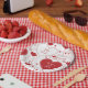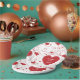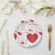 A paper plate designed with a two names valentine pattern, red on white, large version. Customise the paper plate with your heart names, background colour, among other options.