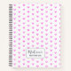 Personalised stylish notebook with your name, the title and date in elegant offblack calligraphy features a hand drawn pink hearts pattern background. Perfect for sketching or keeping track of notes and ideas. Exclusively designed for you by Happy Dolphin Studio!