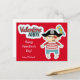 This is a cute kids Valentine post card, with a pirate wearing a red and white striped shirt, a black pirate hat with a white skull, and a red heart shaped eye patch. A green and blue parrot sits on his hat. The stylised text above the image says "Valentine Ahoy". There are two text fields on the front for you to customise. The image and text are placed on a bright red background. You may add text to the back, if you'd like, by choosing "Customise It." Fun for kids! *Clip art used in this design is copyrighted by Encore Software, Inc., which permits use to its licensors. All rights reserved.