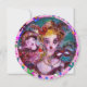 Whimsical vibrant ,artistic painting with colourful confetti..Mythical love between Harlequin and Columbine,Acrylic painting inspired from Commedia dell'Arte - Venice. Bright purple pink yellow green colours.Easy to customise as wedding party announcement,romantic engagement save-the-date ,bridal showers,birthdays,Sweet 16, Quinceanera parties,anniversary ,New Year's Day eve celebrations favours ,thank you,place cards or just about any event you wish!