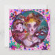 Whimsical vibrant and artistic painting with colourful confetti..Mythical love between Harlequin and Columbine,Acrylic painting inspired from Venetian feather masks and Commedia dell'arte - Venice. Bright purple pink yellow green colours.