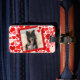 Falling red and pink hearts with cute border collie dog photo in frame.