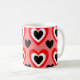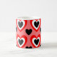 This mug is a great gift for Valentine's Day with its red, black and white hearts. Fun for Valentine's Day coffee or tea.