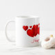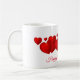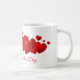 This ceramic coffee mug is shown with a Valentine's hearts print.