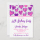 Turn the invitation over, and you'll discover the back adorned with the same cute hearts pattern in vibrant purple and vibrant pink. This cohesive design ensures that every aspect of the invitation reflects the love and joy that will fill the celebration.