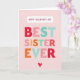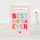This Valentine's Day card features the big message “BEST SISTER EVER” stacked in three lines across a soft blush pink background. The letters are thick and slightly worn-looking, with each one in a different warm or cool color like red, coral, orange, and teal. Above the main words, “HAPPY VALENTINE’S DAY” appears in smaller red letters near the top, set like a simple banner. A single red heart sits centered near the bottom, finishing the layout in a sweet, straightforward way. The overall look feels cheerful and affectionate, like a hug in card form 🥰. It’s a meaningful choice because it puts sisterly love front and center without trying to be romantic or over-the-top. Giving it says, clearly and kindly, “I appreciate you and I’m glad you’re my sister” ❤️.