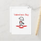 Postcard shows a cute but sad stick figure with a broken heart, holding a wilted flower, plus the words "Valentine's Day." Add text on the back.